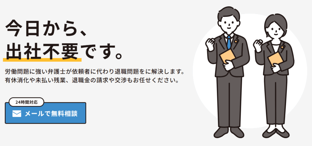 「絶対に揉めたくない」「法的にしっかりした対応をしてほしい」という方には、弁護士による退職代行が適しています。
