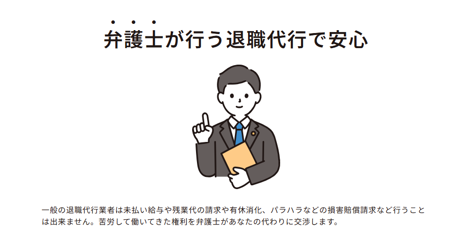 | 特徴 | 弁護士が対応、未払い残業代・退職金交渉可、安心感が高い |