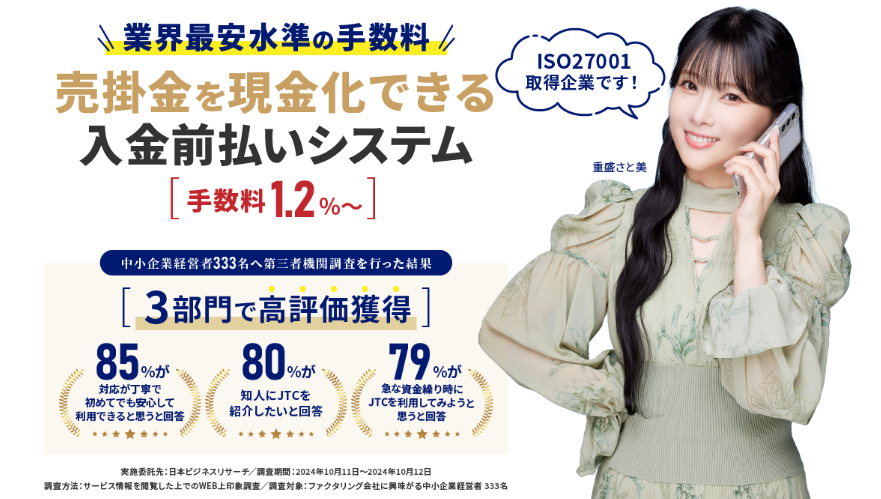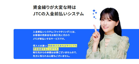 JTCの入金前払いシステムは売掛金を現金化できる!!