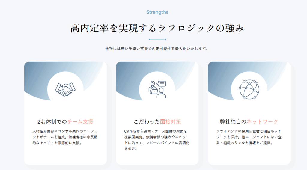 結論から言うと、ラフロジックは“未経験からのコンサル転職”に圧倒的な強みを持つ転職エージェントです。